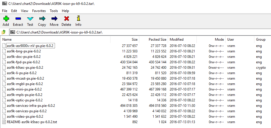 From here, there are two different paths that can be taken. The first option is to extract each individual necessary PIE file from the tar, upload each one to an FTP server, and add each PIE file as an inactive software package individually. The second option is to extract each individual necessary PIE file from the tar, create a new tar containing the PIE files you need, uploading the custom tar file to the FTP server, and adding the contents of the custom tar file to the device as inactive software packages. Both options are explored in detail further below.
